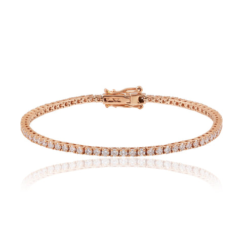 Experience the indulgence of this 14ct rose gold diamond tennis bracelet, highlighting a total diamond weight of 3.75ct. With 83 exquisite 0.045ct F/VS diamonds, this piece radiates unparalleled brilliance and sophistication, making it the ultimate choice for those seeking timeless elegance.