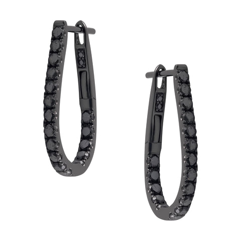 Craft a powerful impression with these 18ct white gold earrings, masterfully enhanced with a black rhodium plating and embellished with 38 black diamonds, totaling 0.72ct. The striking juxtaposition of the black diamonds and rhodium yields a captivating and refined aesthetic.
