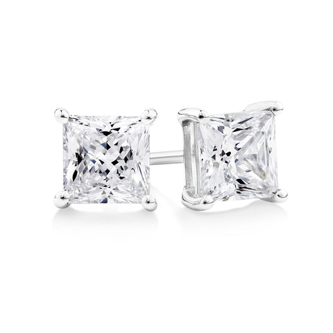 Prism 9CT White Gold Princess Cut Cubic Zirconia Claw Studs