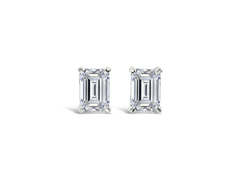 Precision 9CT White Gold Emerald Cut Cubic Zirconia Earrings