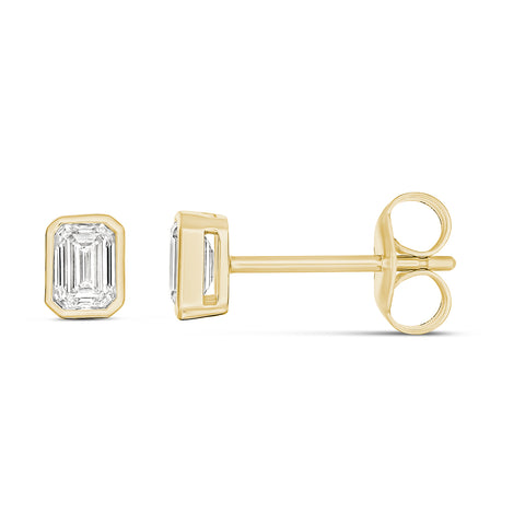 Add a touch of elegance and luxury to your look with these stunning 9ct Yellow Gold Diamond studs. The Lab Grown Emerald Cut and bezel setting of the sparkling diamonds create a unique and timeless style that is sure to catch the eye. Perfect for any occasion and guaranteed to make you feel confident and stylish!