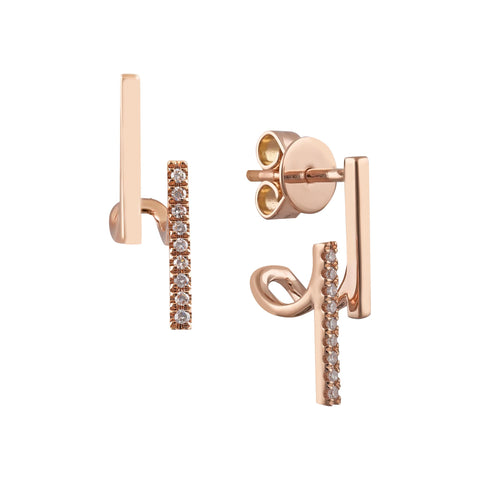 Diamond set rose gold studs that hug the bottom of your earso they'll always hang straight. 18 x Diamonds totaling 0.15cts