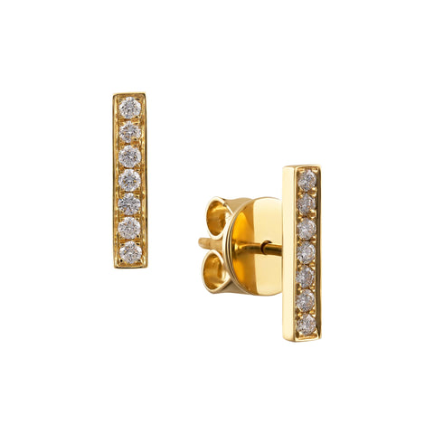Yellow Gold Diamond Stud Bar Earrings