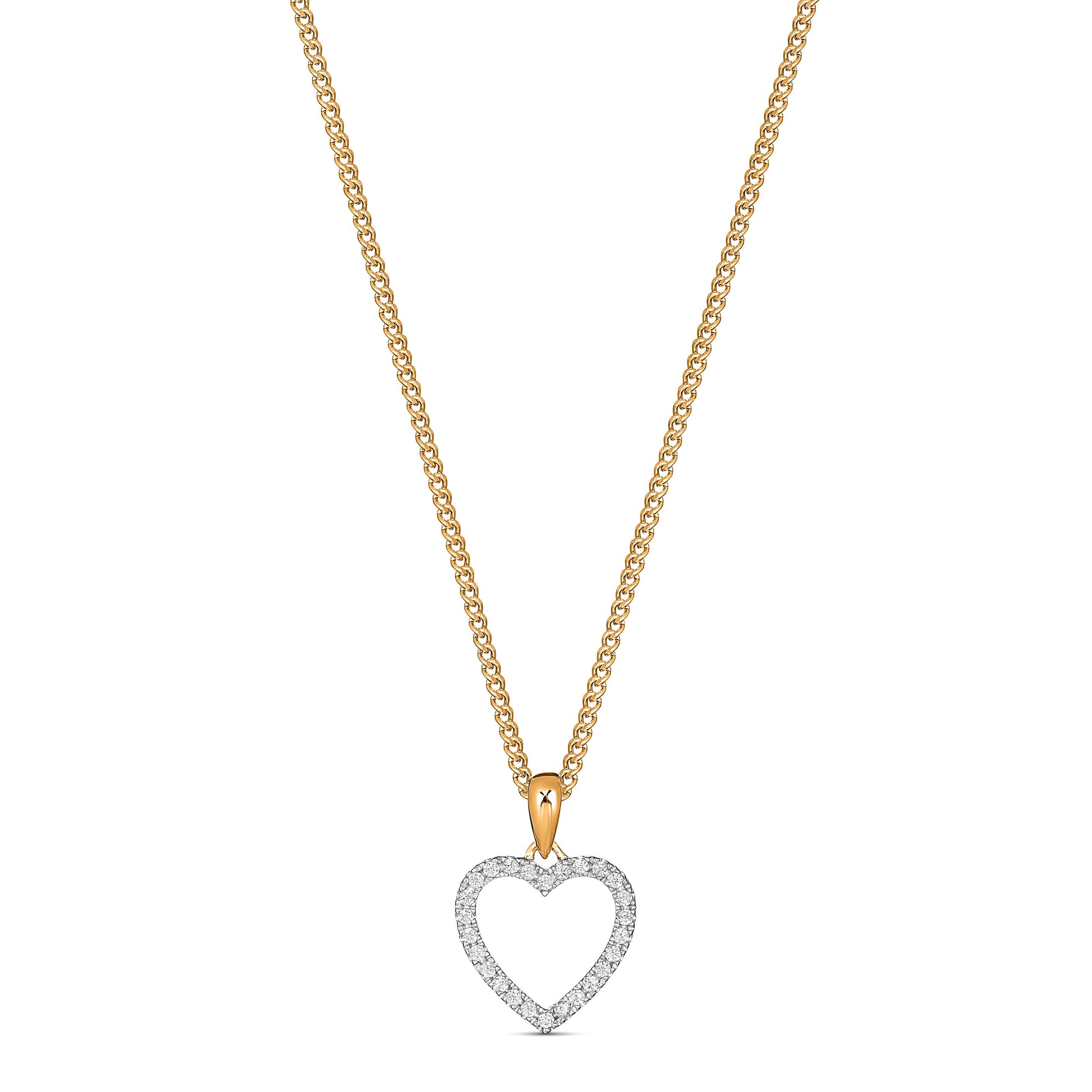 This pendant necklace is crafted with 9ct yellow gold and features an open heart design adorned with sparkling cubic zirconia gemstones. The result is a stunning and sophisticated accessory that will elevate any outfit.