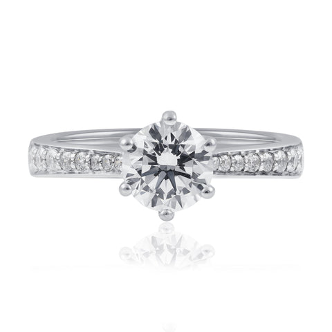 Platinum 6 Claw 1ct LG Diamond Ring with a diamond set pinch, available in Natural diamonds, email for quote