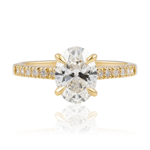 1.5ct Oval Lab grown Diamond solitaire Engagement ring in 18ct yellow gold.
