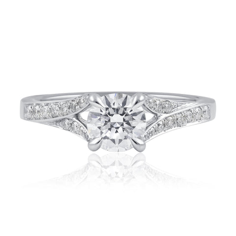 Natural Diamond swept band engagement ring, with a 0.80ct D/VS1 Lg diamond in the centre. 40 x Natural diamond bead set down the band and on the sides
