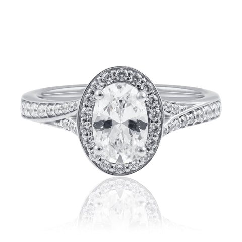 Platinum Pear Lab Grown Diamond Halo Engagement Ring with a Split Band