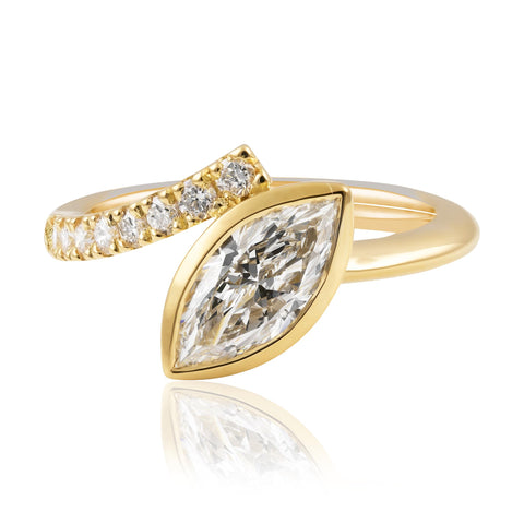 1.02ct G colour Vs2 Marquise Lab Grown Diamond half swept diamond band 8 x 0.025ct G/VS - The Marquise half swept diamond ring features a stunning 1.02ct G color diamond with a clarity of VS2. - With its 8 0.025ct G/VS diamonds, this ring sparkles with the brilliance of diamonds.