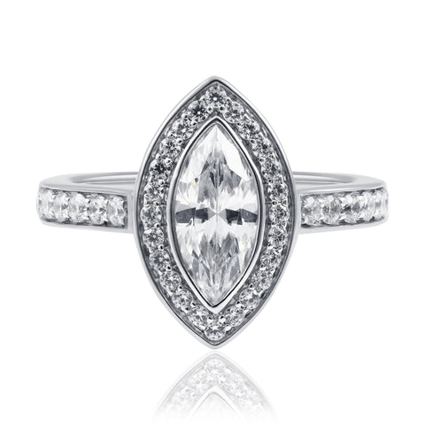 Platinum Marquise Lab Grown Halo Diamond Engagement Ring