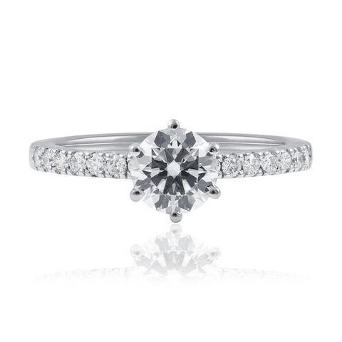 This dazzling platinum engagement ring features a large 0.80ct diamond, adorned with delicate bead-set diamonds along the band for a stunning and elegant look.