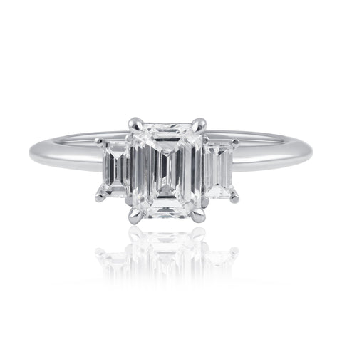1.01ct D/VVS2 Emerald & 2 x 0.15ct Baguette Trilogy fine band Ring in platinum