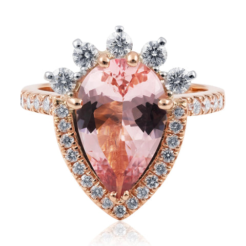 2.7ct Pear-Shaped Morganite and Diamond Ring Set in 18ct Rose Gold and Platinum