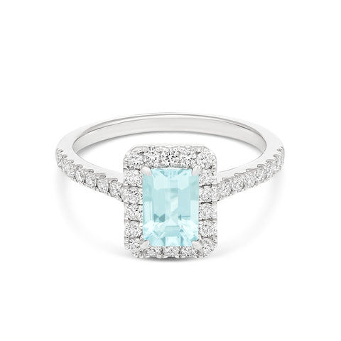 Natural Aquamarine & Diamond Halo Ring in 9CT White Gold